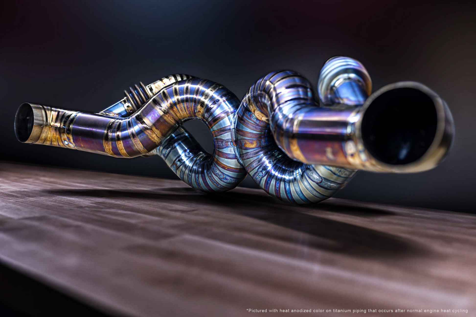 Exceptionally lightweight and extremely strong, titanium is the ultimate material for supercar exhausts. Not only is the aesthetic improved, but titanium piping offers a uniquely exotic exhaust note that is sure to turn heads. Where others are charging $10,000 or more for custom titanium exhaust options, our AMS ALPHA Twin Turbo Kit Titanium Exhaust is available as an add-on for a fraction of the cost.